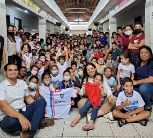Participando com a Prefeita Mariana e com a Secretária Zeneide, da entrega dos fardamentos e dos kits escolares nas Escolas Municipais.